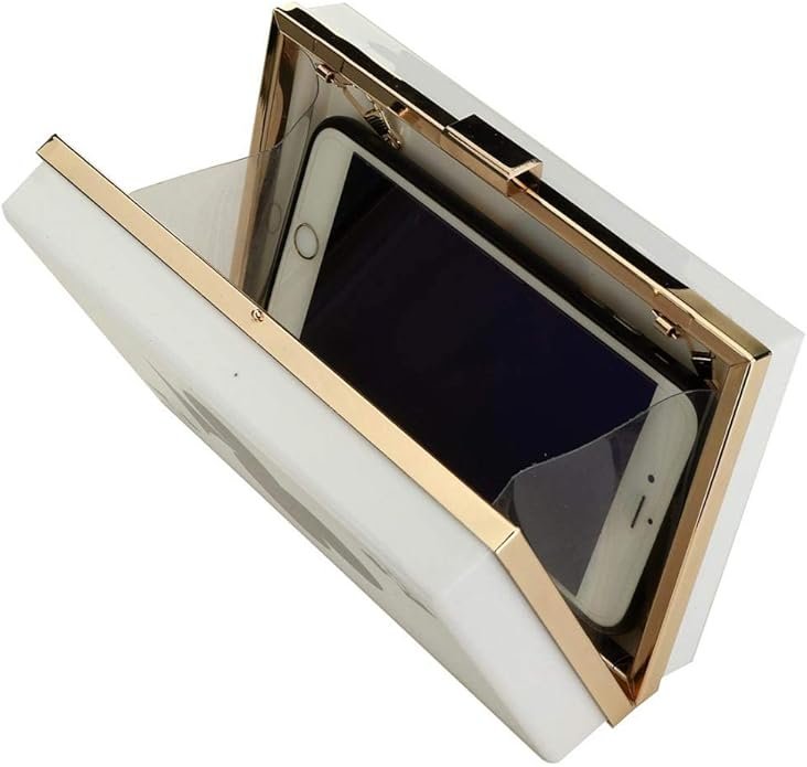 • *Material: This women evening bag is made of Acrylic, which is poker shape style. Our gun metal frame is no scratch, no bubble, no rust on surface. Smooth Satin Lining.